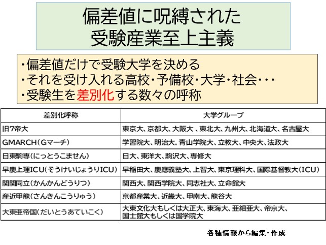 受験戦争で定型化されてきた偏差値史上主義の産物でもある。