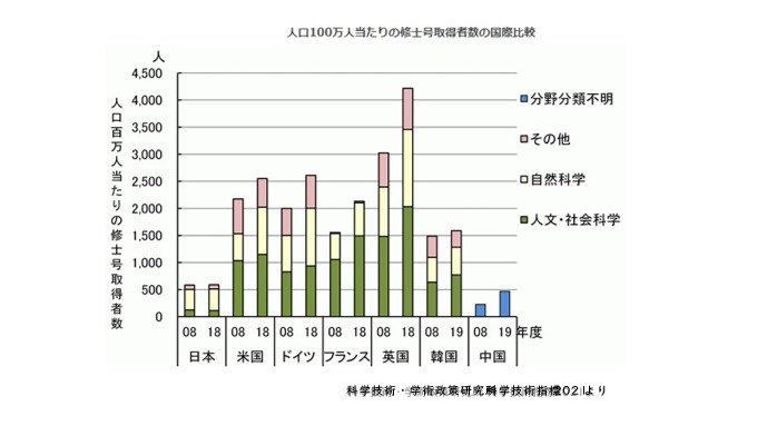 ・人口100万人あたりの博士号取得者数は、韓国の3分の2。