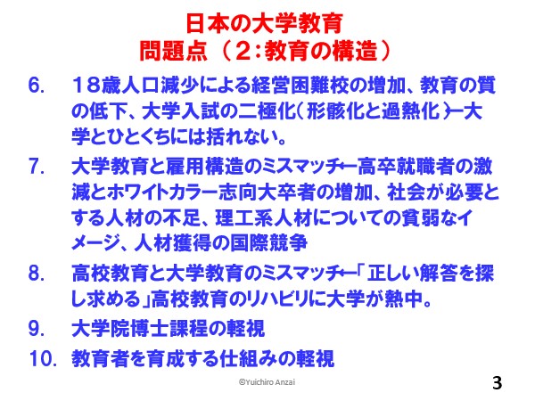 安西先生は、大学教育の構造的問題点の一部をこのように発表した。